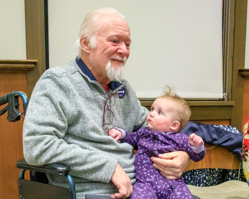Mike Landers with his six-month-old granddaughter Quinn during last week’s ceremony honoring him for many years of community service. Credit: (Photo by Denise Maccaferri)