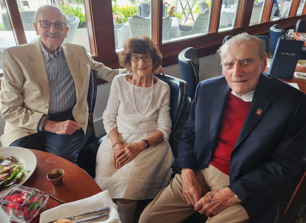 Shaw graduated with the Class of 1946, along with classmates Enzo Monti and Ina Cutler, whose last name was Zall back then. The three friends – along with a fourth, Betty (Besegai) Grozinger, who couldn’t make it this time – gather annually to commemorate their graduation.