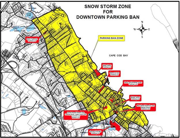 In anticipation of the storm – which is affecting a wide swath of the country – the town announced that a parking ban will go into effect at 1 p.m. Sunday in parts of the downtown and North Plymouth areas. Vehicles parked within those zones “will be subject to tagging and towing at the owner’s expense during the parking ban,” the town said, but public lots will be open.