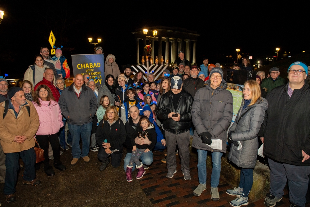 Over 80 people gathered to celebrate the Chanukah miracles, with the [Chabad of the South Shore] lighting of the Plymouth Rock public menorah, on Sunday, Dec. 29, the fifth night of Chanukah, when suddenly a crash was heard.