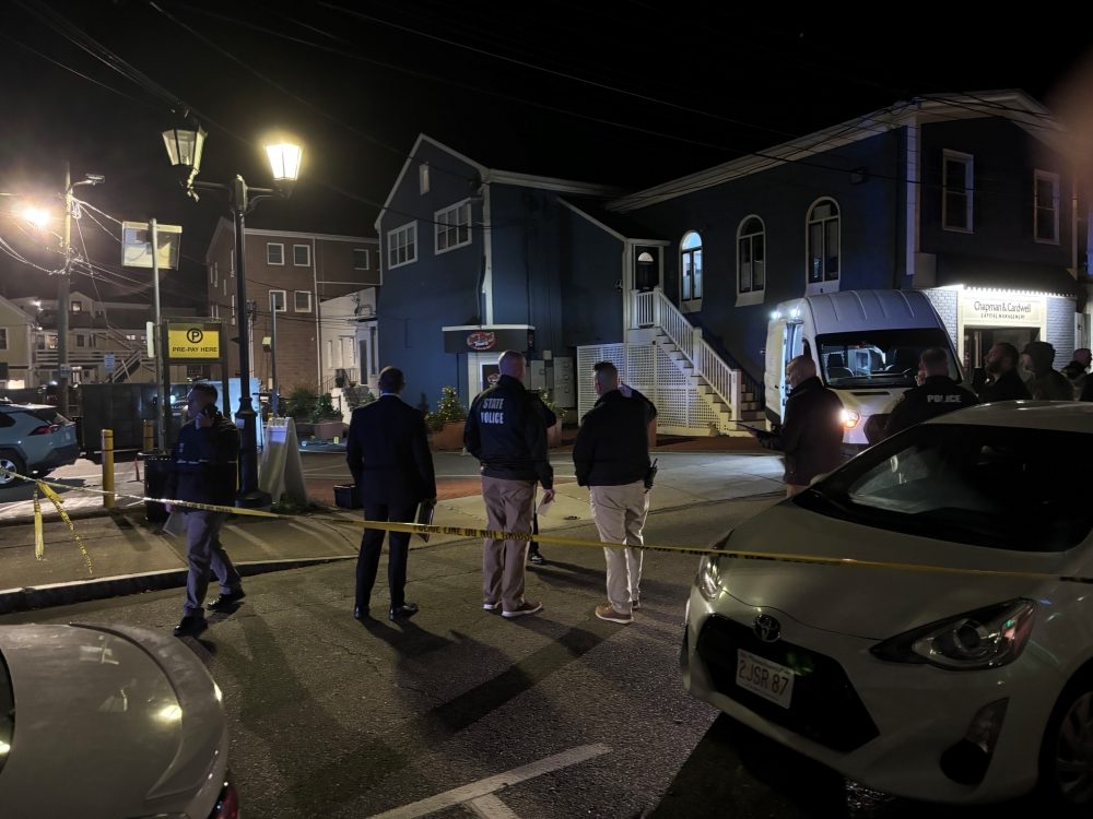 There was an unconfirmed report that the shooting stemmed from a “road rage” incident, and that the victim was shot several times, including in the head. A car with its hood open and doors ajar was parked at an angle on Main Street near the intersection of Middle Street, but it was unclear whether it was related to the shooting. A tow truck with its lights flashing was stationed nearby, apparently in preparation to take the vehicle away.