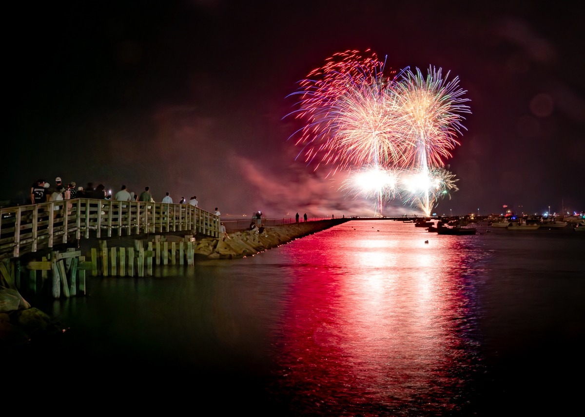 The fireworks blast off at dusk – around 9:15 p.m. – when the concert concludes. Suggested viewing spots are Pilgrim Memorial Park, Burial Hill, and Nelson Memorial Park, but many people have their own special spots for watching the pyrotechnics.