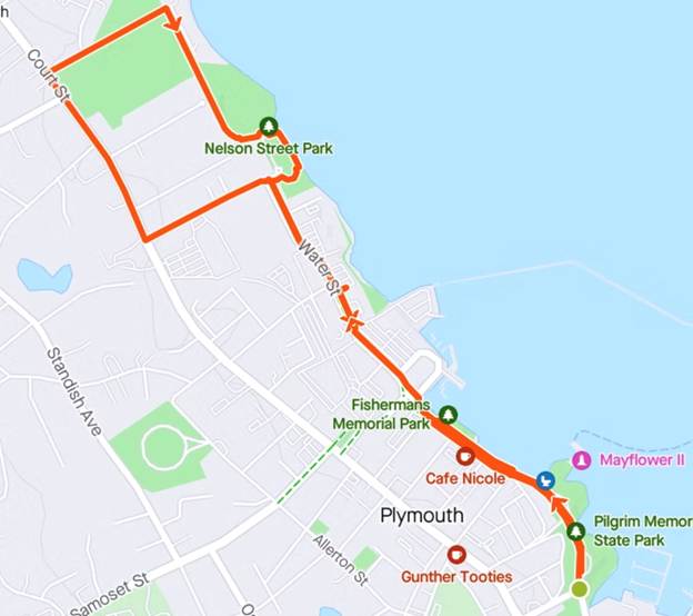 The parade steps off from Cordage Park Circle at 9 a.m. and makes its way south on Court Street to downtown along Main Street and Main Street Extension, turning left onto Water Street, and finishing at Plymouth Rock.