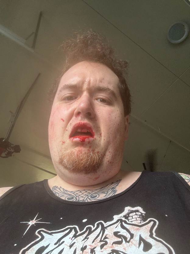 Mike Wisdom shortly after he was allegedly attacked in his home by Jose Juarez. Credit: (Photo courtesy of Mike Wisdom)