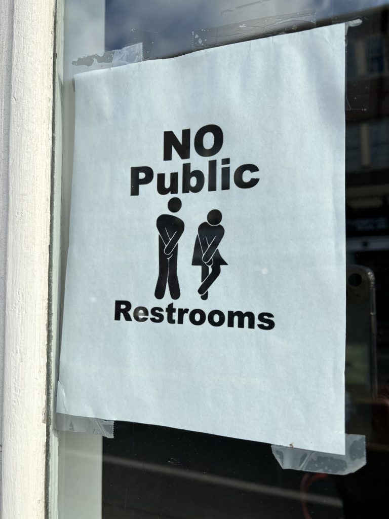 As for restaurants and bars, I understand that they don’t want a parade of non-customers coming and, uh, going, but is it really that big of an issue? And if it is, doesn’t that hammer home the point about the lack of public facilities? Besides, the way some businesses go about it sends an inhospitable message to visitors (and residents). When the first thing you see is a sign that basically says “go away,” well, you might just do that. And never come back.
