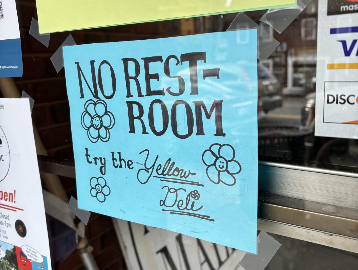 I worked in downtown Boston for years and hardly ever saw such off-putting messages on storefronts. What is it about Plymouth that makes bodily functions such a problem? How are businesses in a major city able to deal with people seeking to relieve themselves while much smaller Plymouth cannot cope?