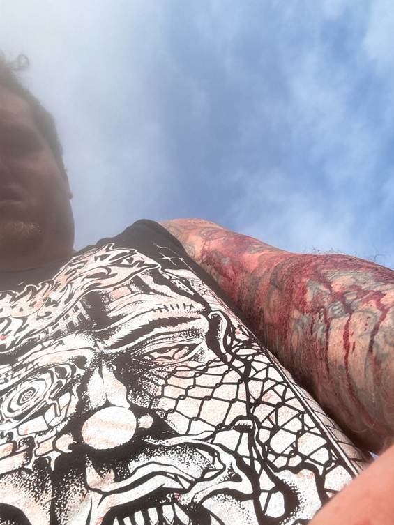 This photo from Mike Wisdom taken shortly after he was attacked, shows blood covering his arm.