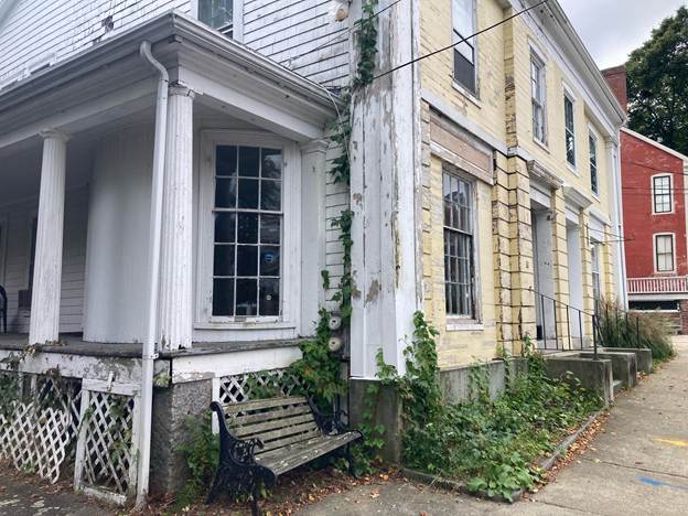 Speaking of eyesores in the downtown area, there are two neighboring structures on North Street where it meets Carver Street, just a stone’s throw from the Plymouth Center for the Arts and the Spooner Museum. One used to be the Old North Street Tea and Curiosity Shop and the other the Trask Museum. Both are said to be haunted. I’m no expert in real estate finance, but what a shame that these two buildings, right across from the handsome Mayflower Society House, look like they’re ready for a bulldozer.