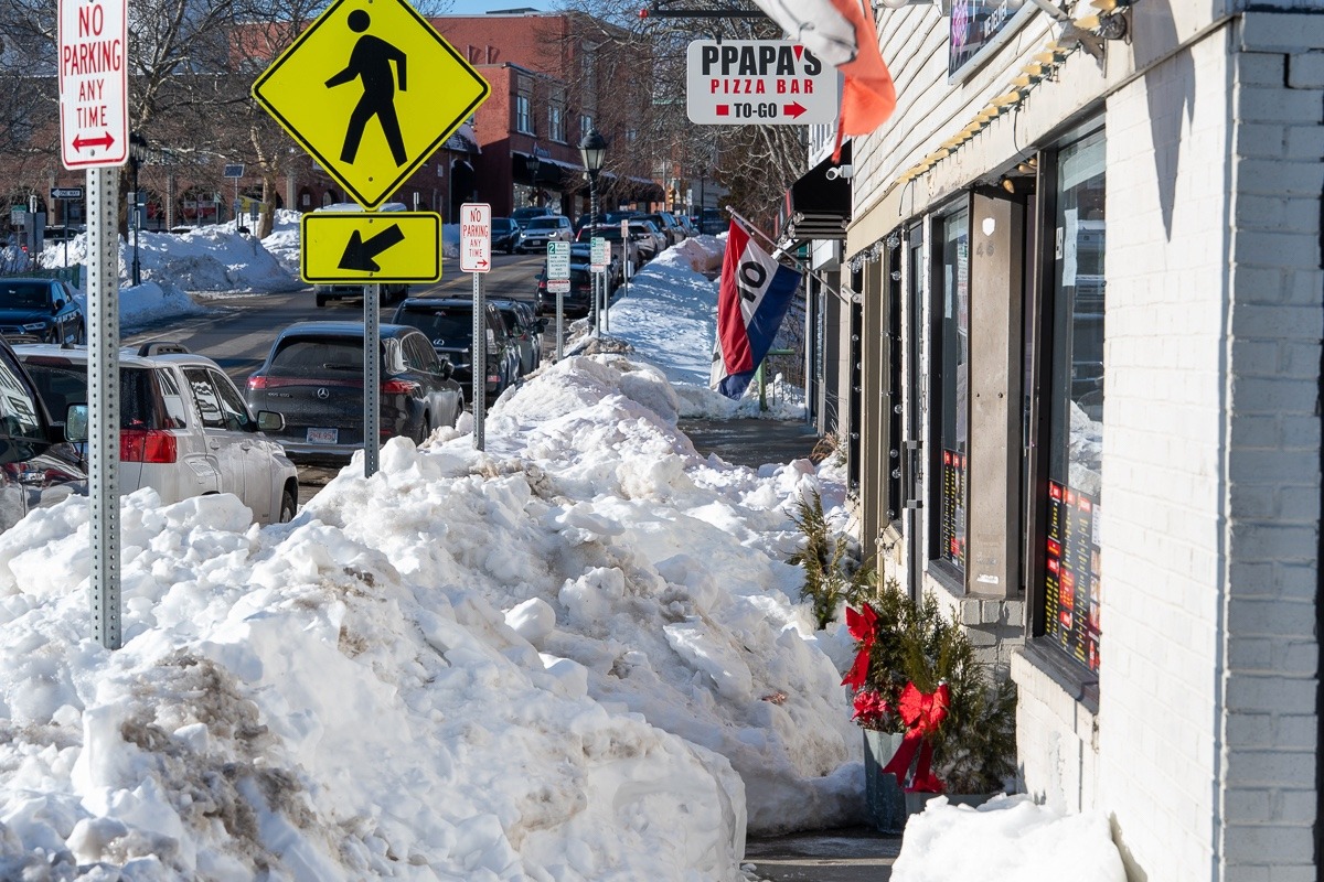 As of Thursday night – three days after the storm had passed – snow had not been pushed back from downtown and North Plymouth side streets, Quintal said, and sidewalks around Town Hall and Hedge School had not been cleared.