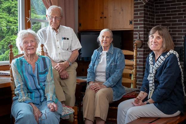 As I was researching another column, I revisited my Dunham cards. Sidetracked, I decided to track down members of the club to find out whether the original watercolors still existed. I was surprised to learn the club had left the First Parish site for accessibility reasons in 2017. Undeterred, I tracked down some members, which led to a conversation hosted by club member Pandy (Anne) Brewster and her husband Ben at their home. Vice President Ruth Fry, and current President Maggi Tavares were also there.