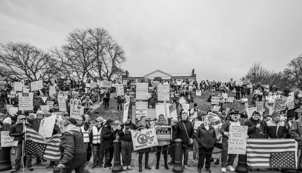 It was hard to determine the size of the crowd at Saturday’s “Hands Off!” demonstration on Water Street – some people estimated it at more than 1,000 – but there is no doubt it was one of the town’s biggest protests in decades.