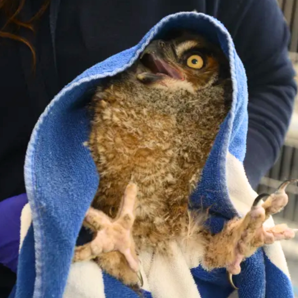 The great horned owlet pictured here was orphaned by highly toxic chemicals pest management professionals and homeowners use to target rats and other rodents.