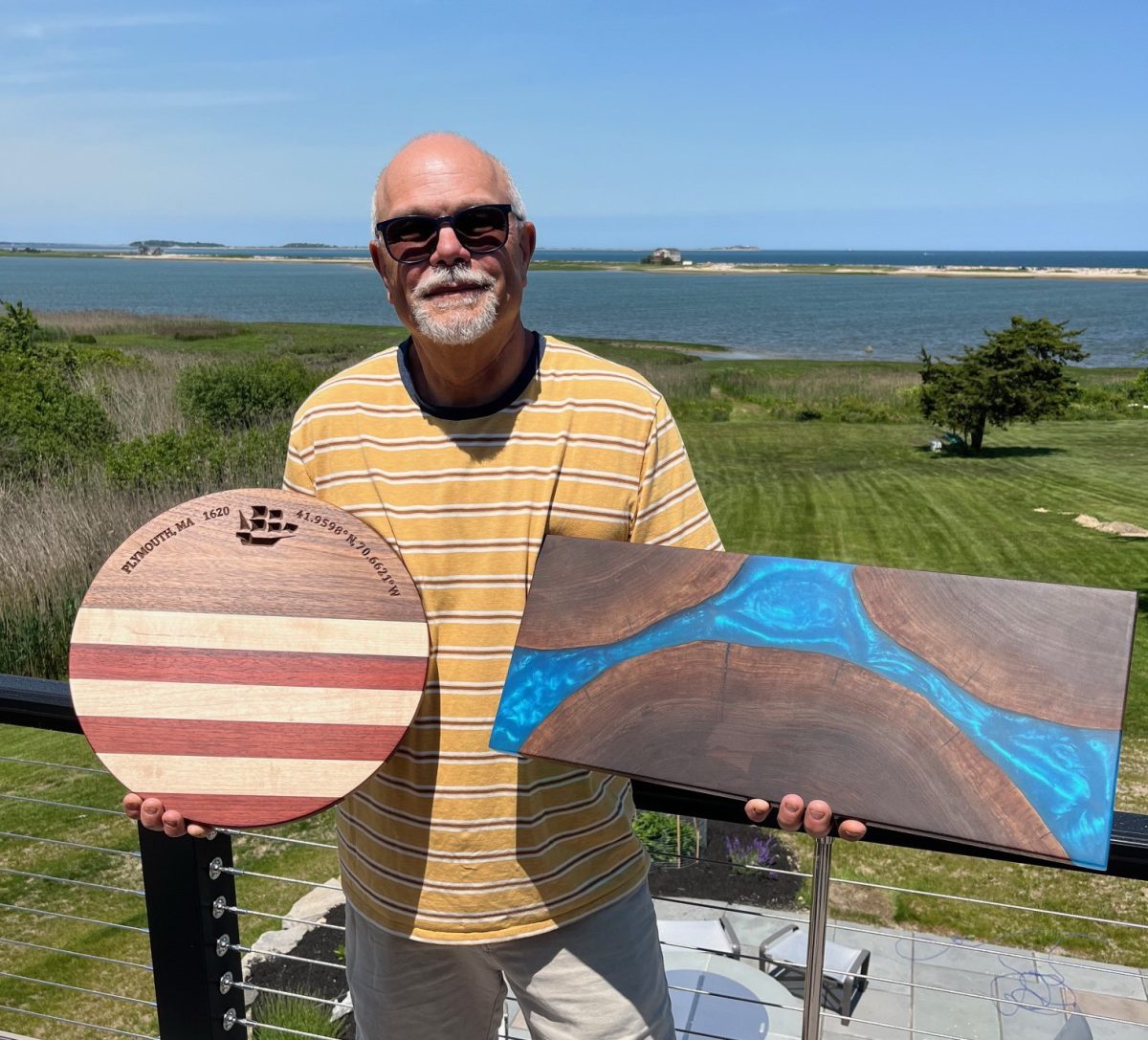 He recently moved his workshop from Jesse’s Marine on Lothrop Street to the garage at his home. Iaquinto has switched to selling smaller works and only online. He focuses principally on custom epoxy resin and live-edge coffee tables, desks and homeware. “Live edge” means incorporating the natural edge of a tree into a design.