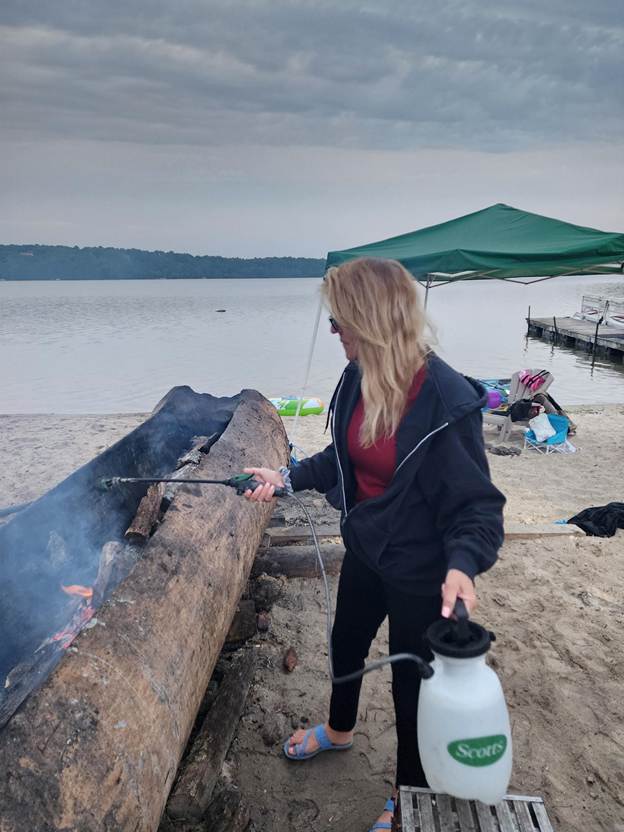 Melissa Ferretti of the Herring Pond Wampanoag Tribe will speak at the Southeastern Massachusetts Pine Barrens Alliance headquarters on July 24. (She’s shown here working on a canoe.)